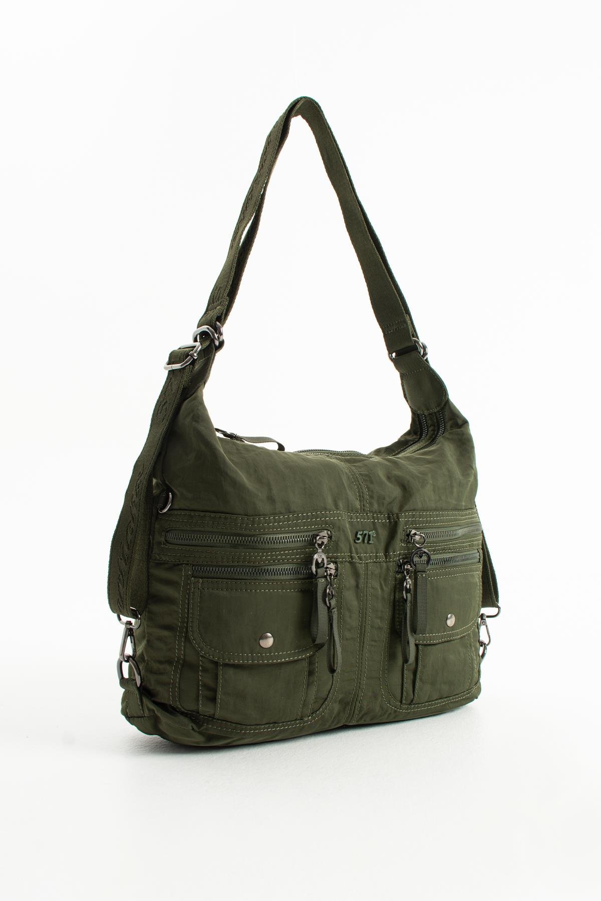 Yumuşak Dokulu Ultra Hafif, Esnek ve Su Geçirmez Polyamid Kumaş Omuz ve Sırt Çantası Haki Model: (571-13-14J)