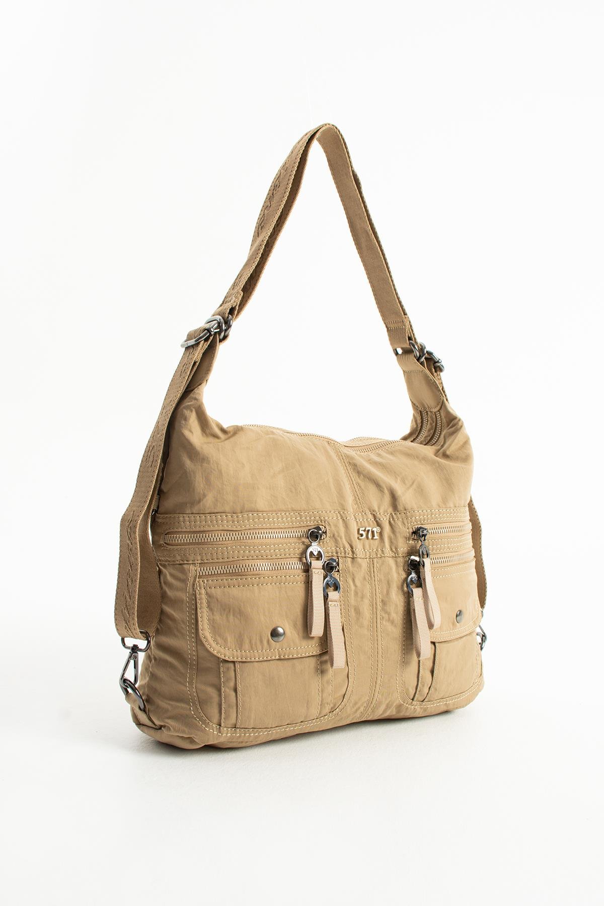 Yumuşak Dokulu Ultra Hafif, Esnek ve Su Geçirmez Polyamid Kumaş Omuz ve Sırt Çantası Vizon Model: (571-13-14J)